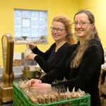 SANDY und Nicole füllen Kräuter, Tees und Gewürze per Hand ab und sind im Verkauf |