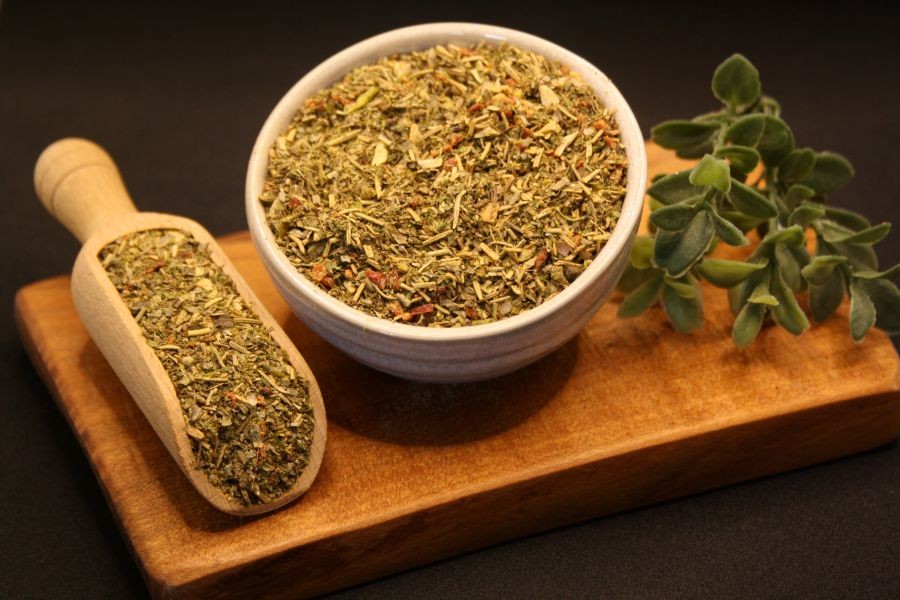 Zutaten: Paprika, Rosmarin, Basilikum, Dextrose, Salz, Zwiebeln, Petersilie, Thymian, Chilies, Knoblauch, Rapsöl.